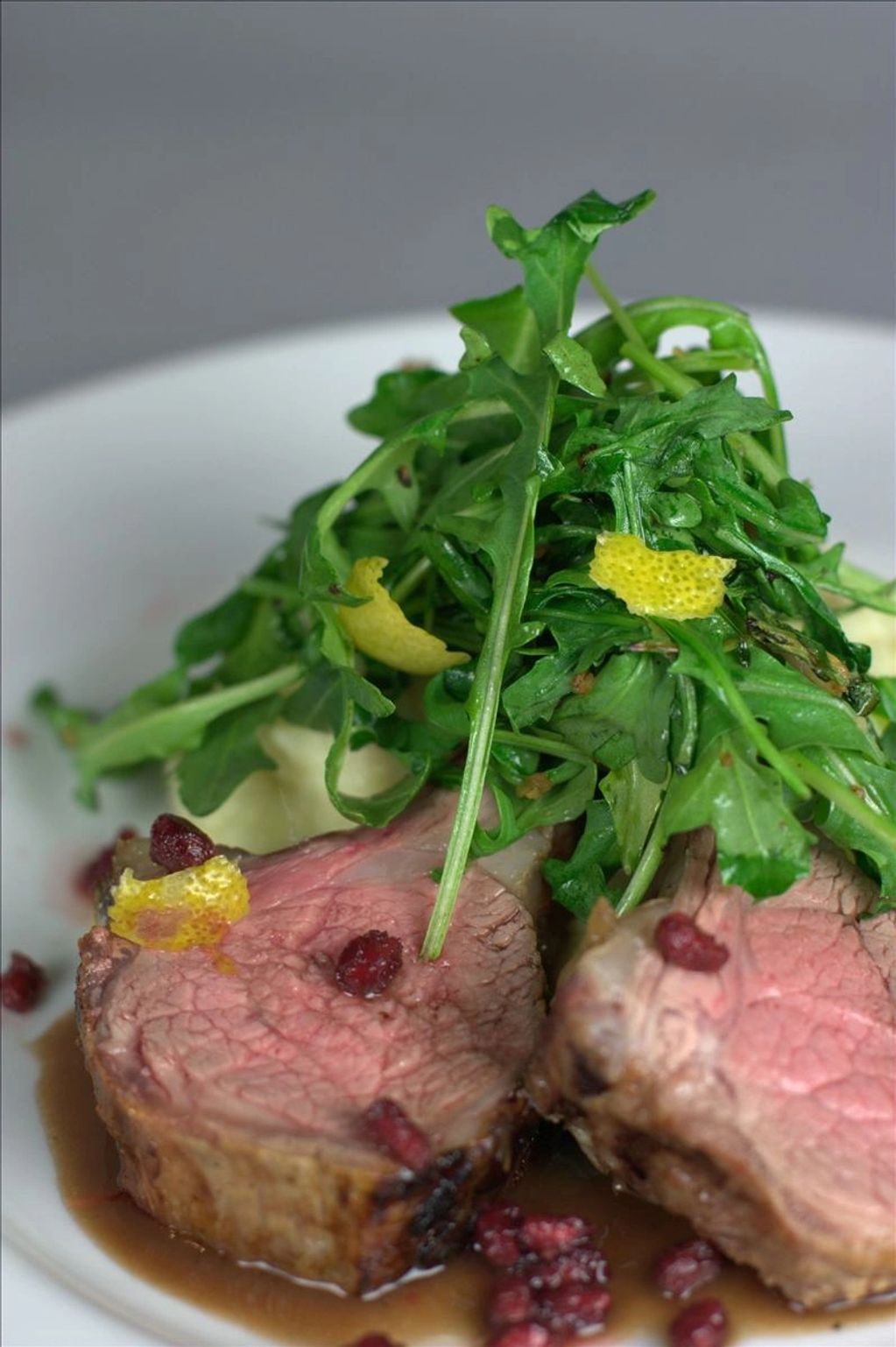 Rack of lamb ~ pomegranate reduction, whipped parsnip